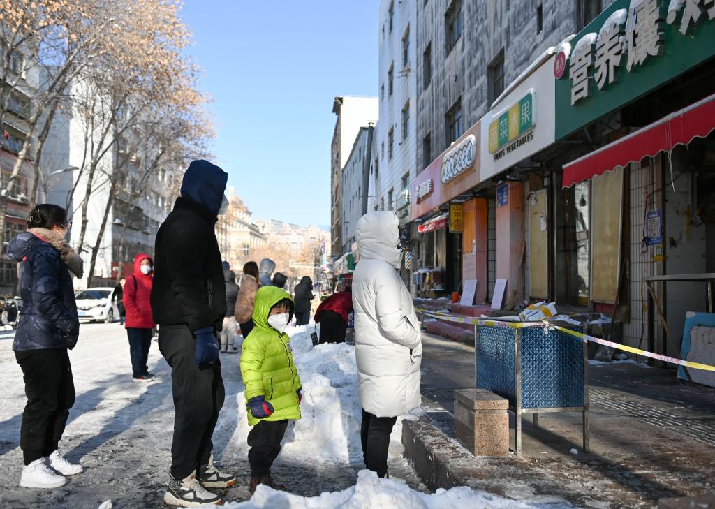 11月28日,顾客在乌鲁木齐市西虹东路南二巷的一家烤馕店前排队买馕。 新华社记者郝建伟 摄
