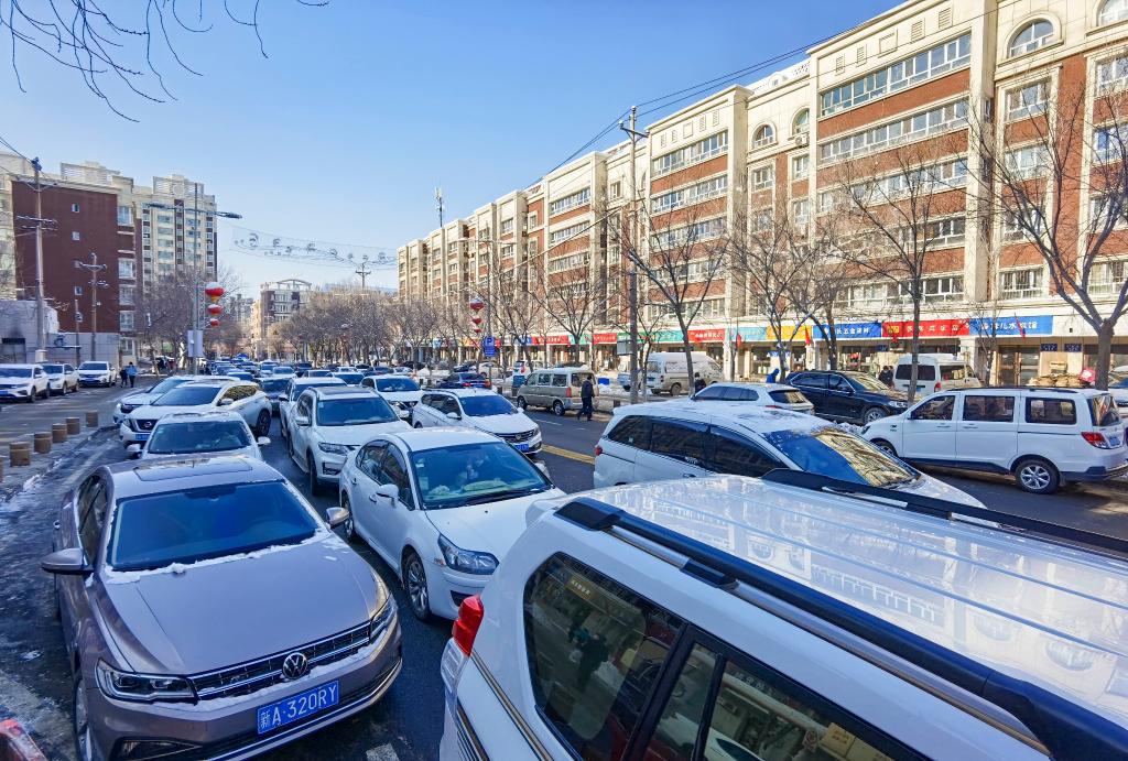 11月28日,汽车行驶在乌鲁木齐市万和街上(手机照片)。新华社记者胡虎虎 摄