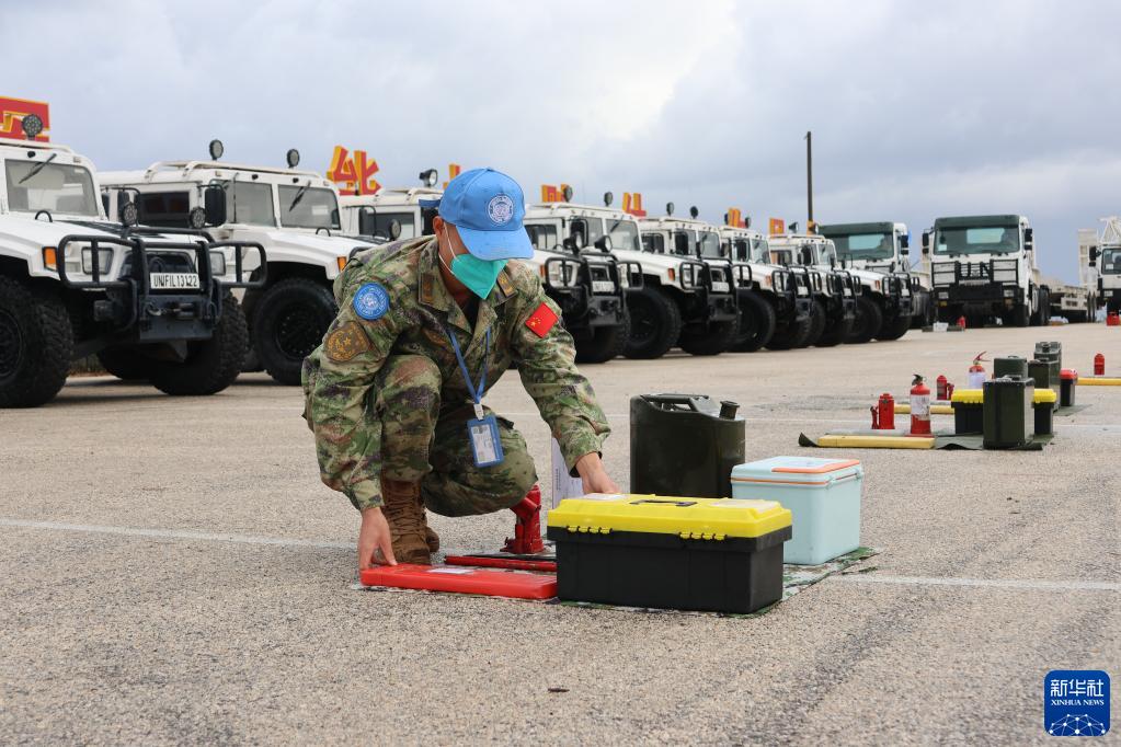 11月28日,核查官员在黎巴嫩南部辛尼亚村的中国维和部队营区检查车辆。新华社发(李竹林摄)