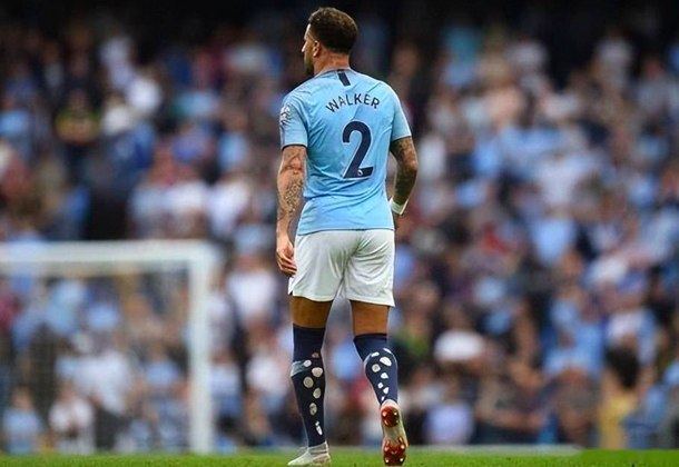 “三狮军团”的后卫凯尔·沃克的袜子破了很多洞↑