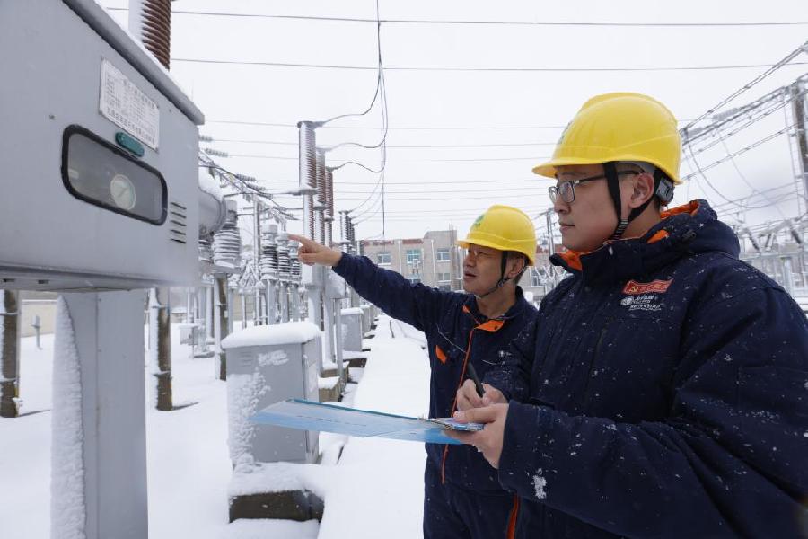近日,国网阜新供电公司工作人员对辖区电力设备进行巡检。(受访者供图)