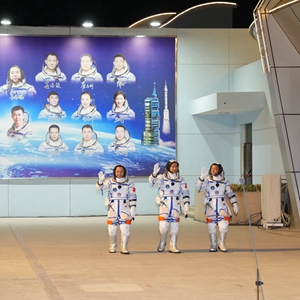 11月29日晚,神舟十五号载人飞行任务航天员乘组出征仪式在酒泉卫星发射中心问天阁广场举行。(记者:李国利 温竞华 黄一宸)