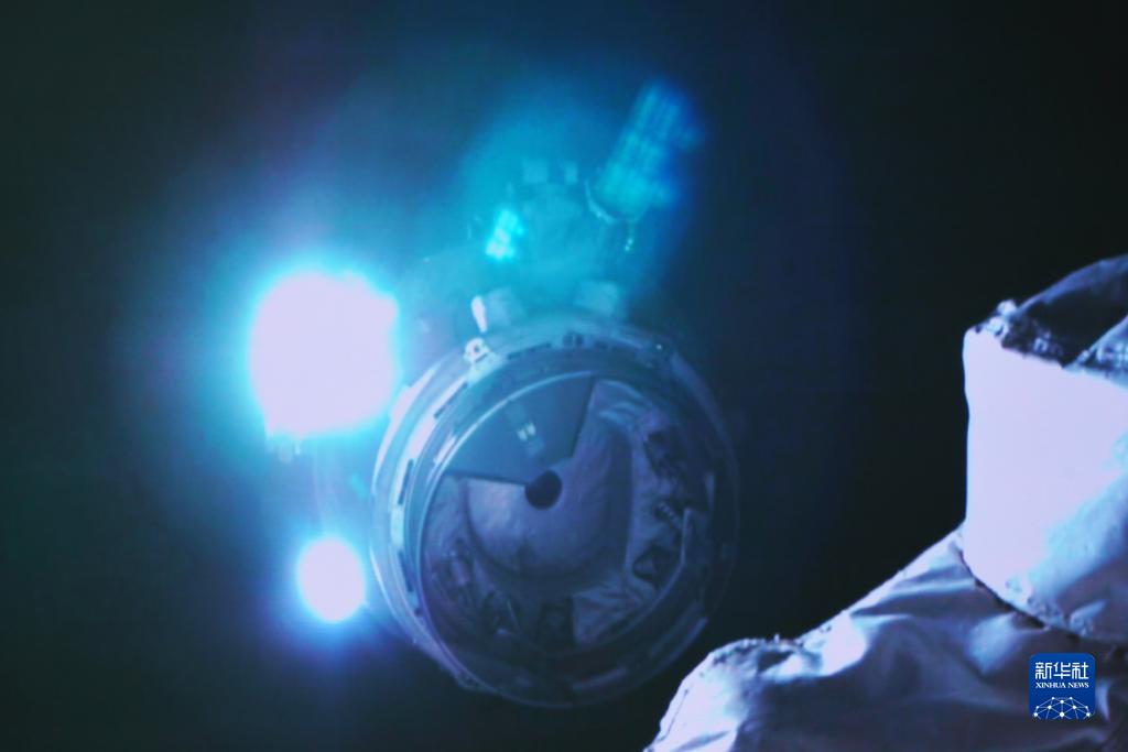 11月30日在酒泉卫星发射中心拍摄的神舟十五号载人飞船与天和核心舱进行自主快速交会对接的画面。新华社记者 郭中正 摄