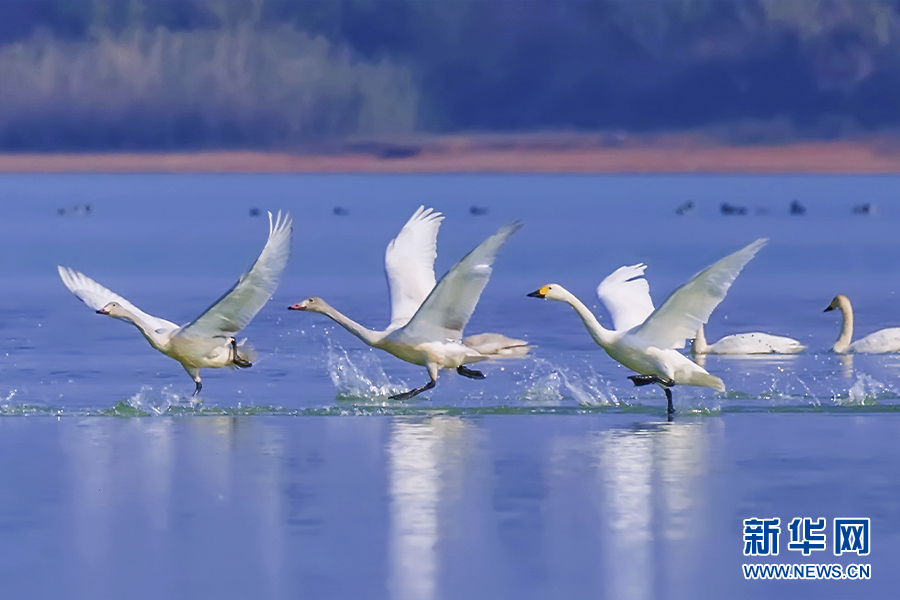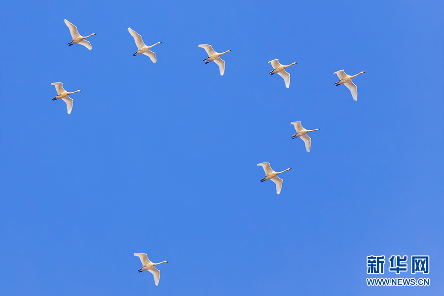 天鹅抵达江夏鲁湖越冬栖息。新华网发 赵妤 摄
