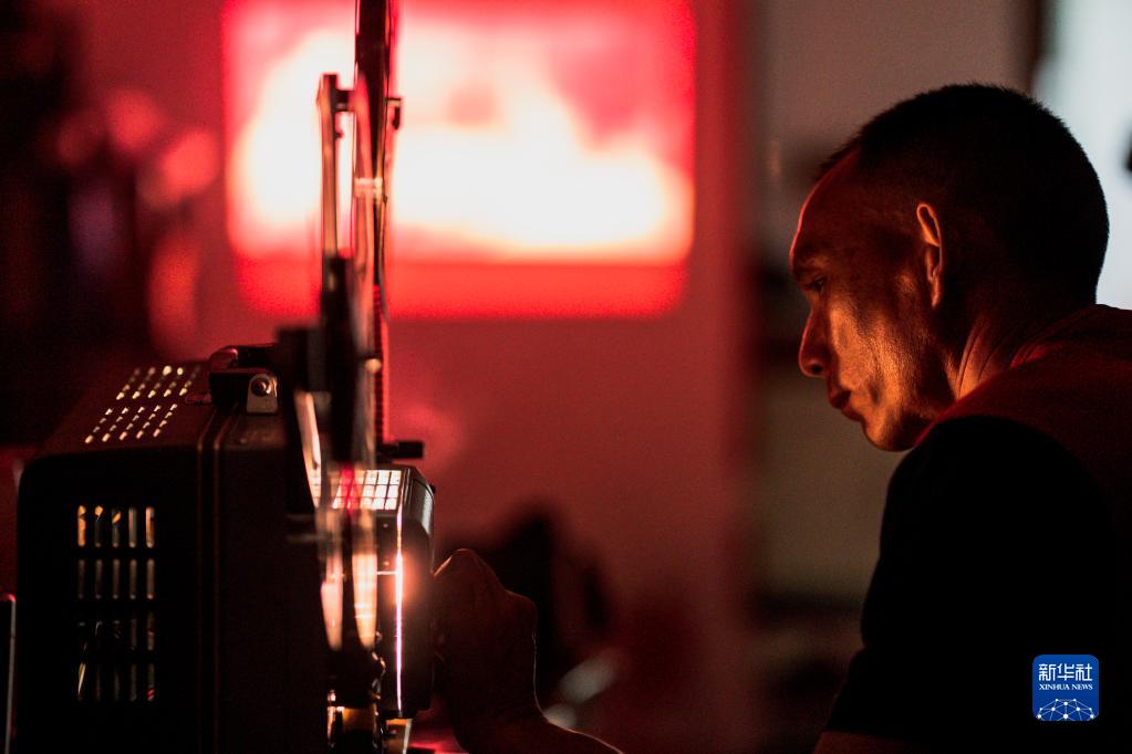 在怒江州泸水市,杨明金调试胶片放映机(2022年10月22日摄)。