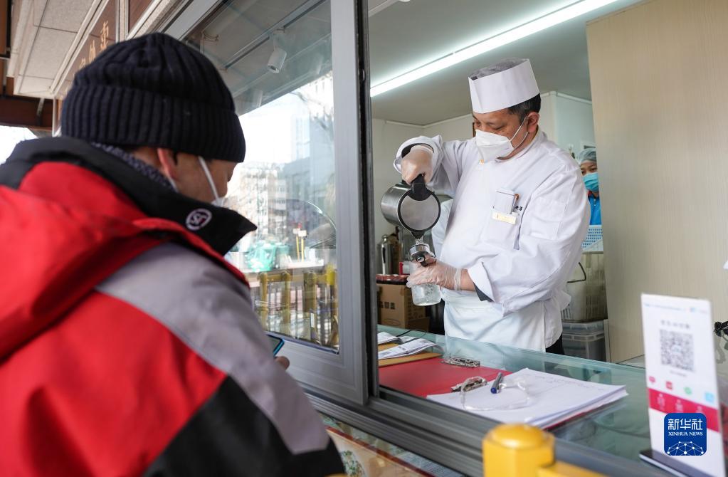寒潮袭来,北京中国职工之家饭店设立了“小哥驿站”,专门为外卖和快递骑手们提供售价10元的盒饭,并免费为“小哥”们提供热水,让他们在冬日里感受到关爱和温暖。