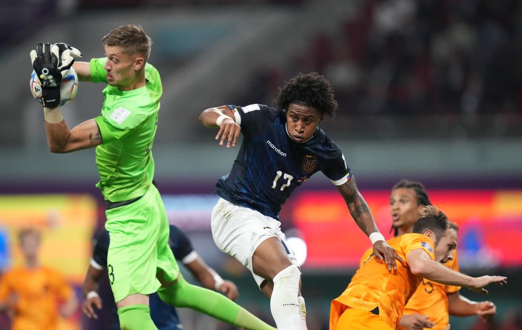 11月26日,诺珀特(左)在对阵厄瓜多尔队的小组赛中扑救。