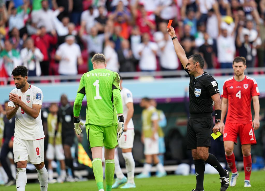 11月25日,威尔士门将亨尼西(图中1号)被出示红牌