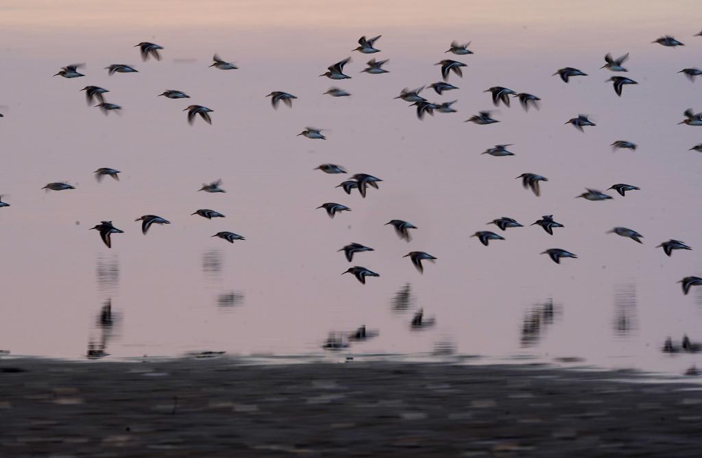 11月11日,一群水鸟在江西鄱阳湖南矶湿地国家级自然保护区的湿地栖息。新华社记者万象 摄