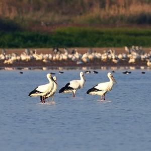 12月1日上午,江西鄱阳湖南矶湿地国家级自然保护区工作人员曾庆发像往常一样,向远处的湖面远眺,望着湖中如白雪般的星星点点,嘴角不自觉上扬。“看那边,翅膀处有黑羽的是国家一级保护动物东方白鹳,近期在我们湿地保护区内观测到的有3700多只!”