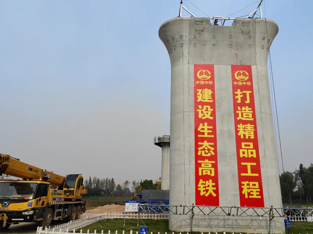 西安浐河之畔,西康高铁建设现场。近处,装运设备的卡车往来穿梭;远处,一座座高铁桥墩已现雏形。