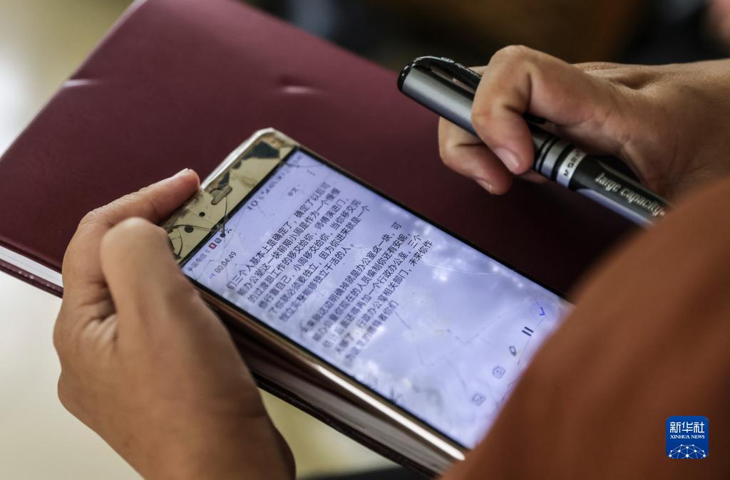 12月1日,海南残服再生资源有限公司财务秦晓芬借助语音软件开会。