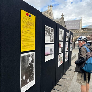 12月2日,人们在新西兰克赖斯特彻奇纪念路易·艾黎诞辰125周年活动上观看图片展。新华社发(王海权摄)