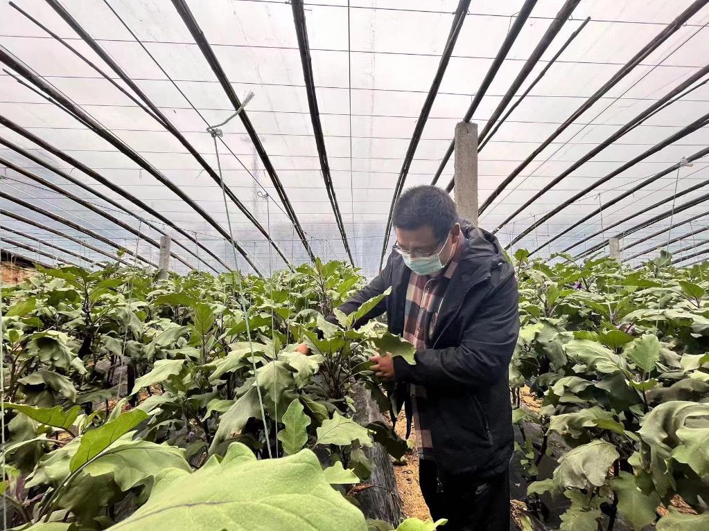 郑同成在蔬菜大棚里采摘长茄(受访者供图)