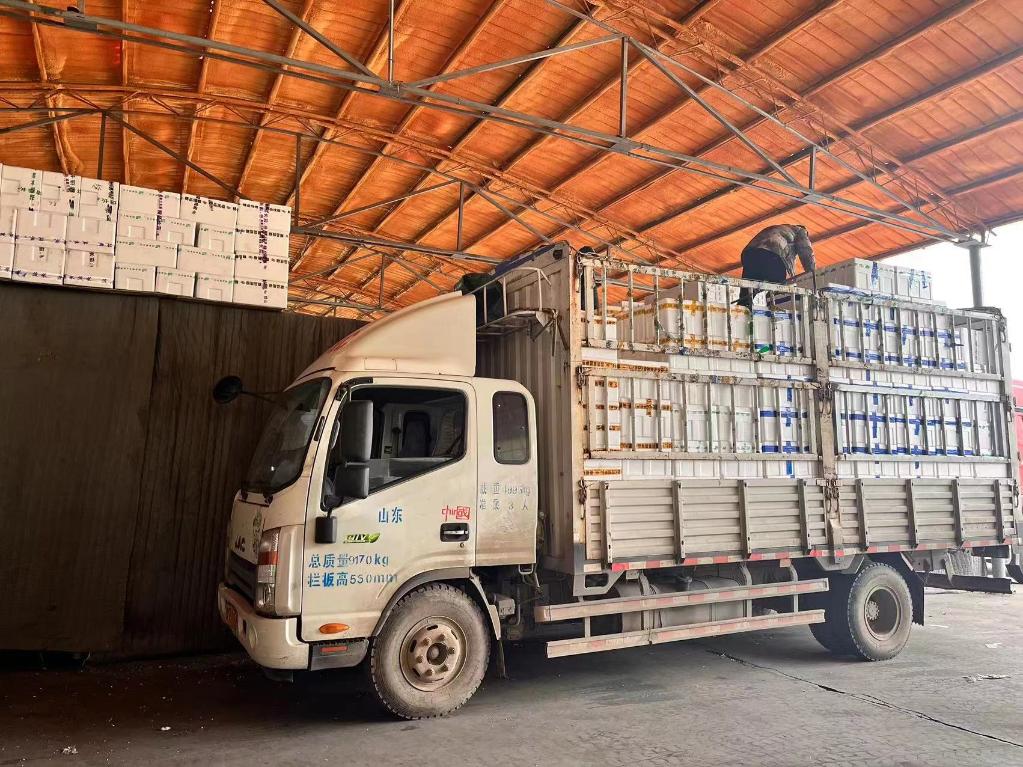 高楠果蔬专业合作社工作人员正将蔬菜装车(受访者供图)