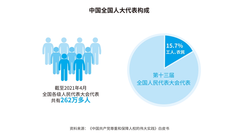 中国从本国国情实际出发,不断发展全过程人民民主,完善人民当家作主制度体系,建立了人民代表大会制度、中国共产党领导的多党合作和政治协商制度、民族区域自治制度和基层群众自治制度,为人民享有更加广泛、更加充分、更加全面的民主权利奠定了坚实的制度基础。