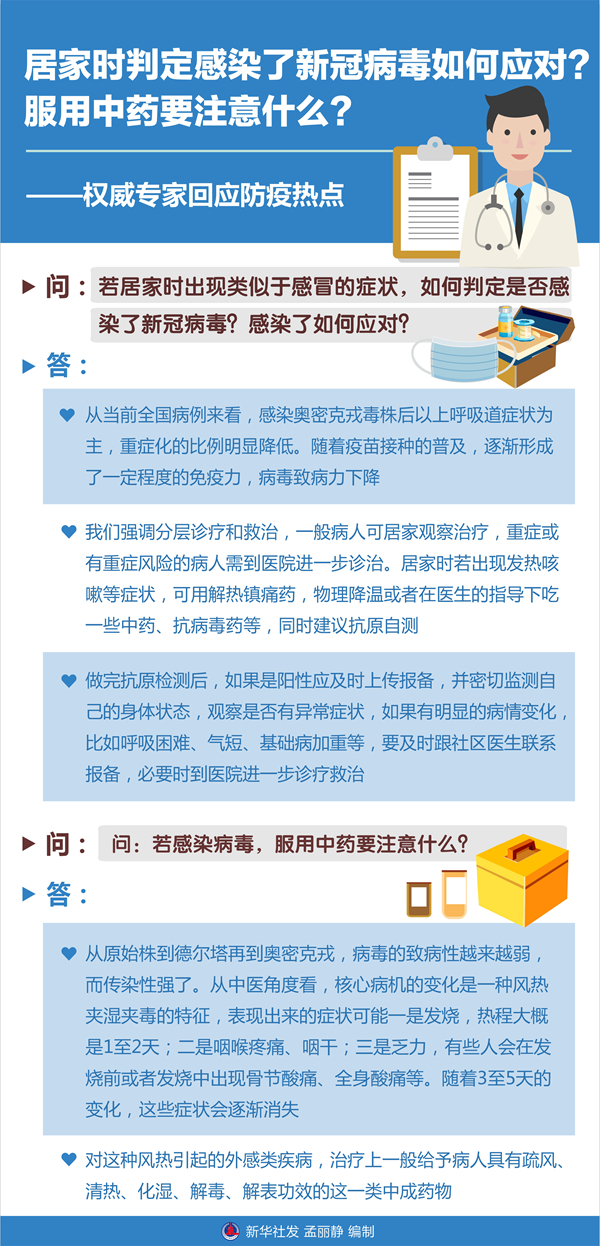 新华社北京12月7日电 题:居家时判定感染了新冠病毒如何应对?服用中药要注意什么?——权威专家回应防疫热点