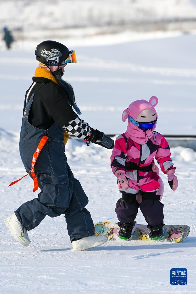 在新疆丝绸之路国际度假区滑雪场,一名小朋友在练习滑雪(12月5日摄)。