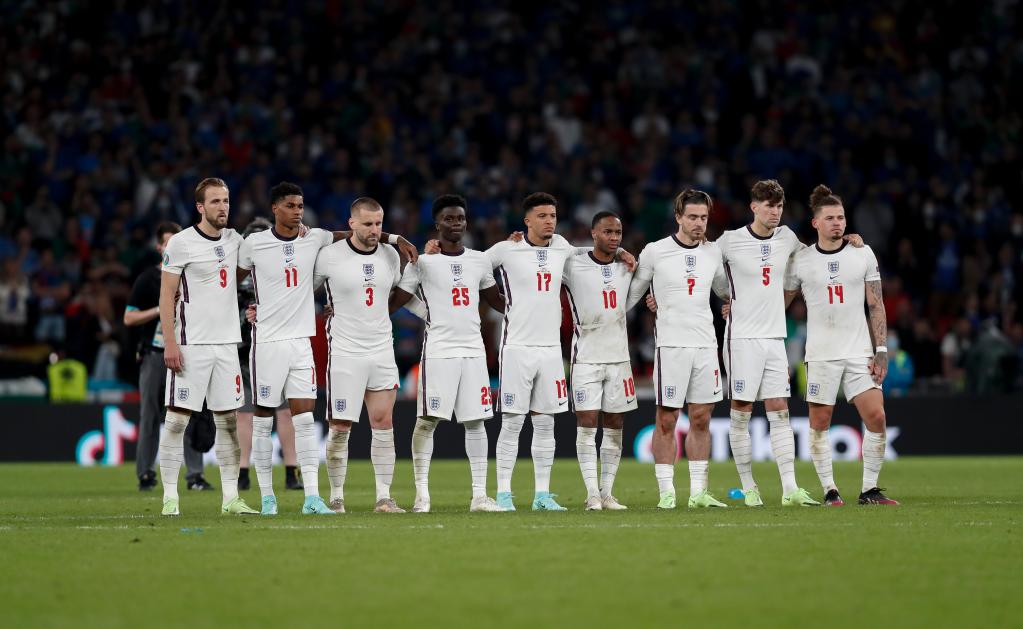 ↓2021年7月11日,英格兰队球员在欧锦赛决赛的点球大战中