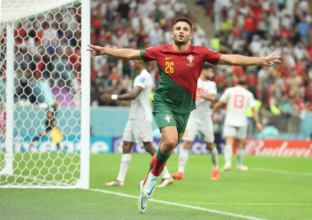 ↑12月6日,葡萄牙队球员冈卡洛·拉莫斯完成“帽子戏法”