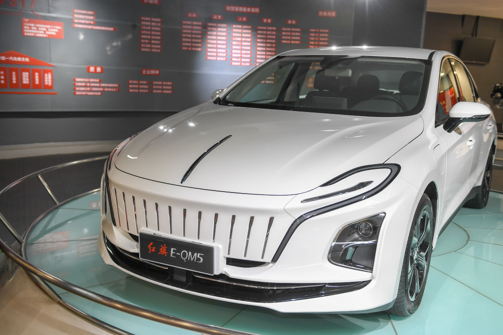 在位于吉林长春的红旗博物馆内展出的红旗新能源车型。新华社记者张楠 摄