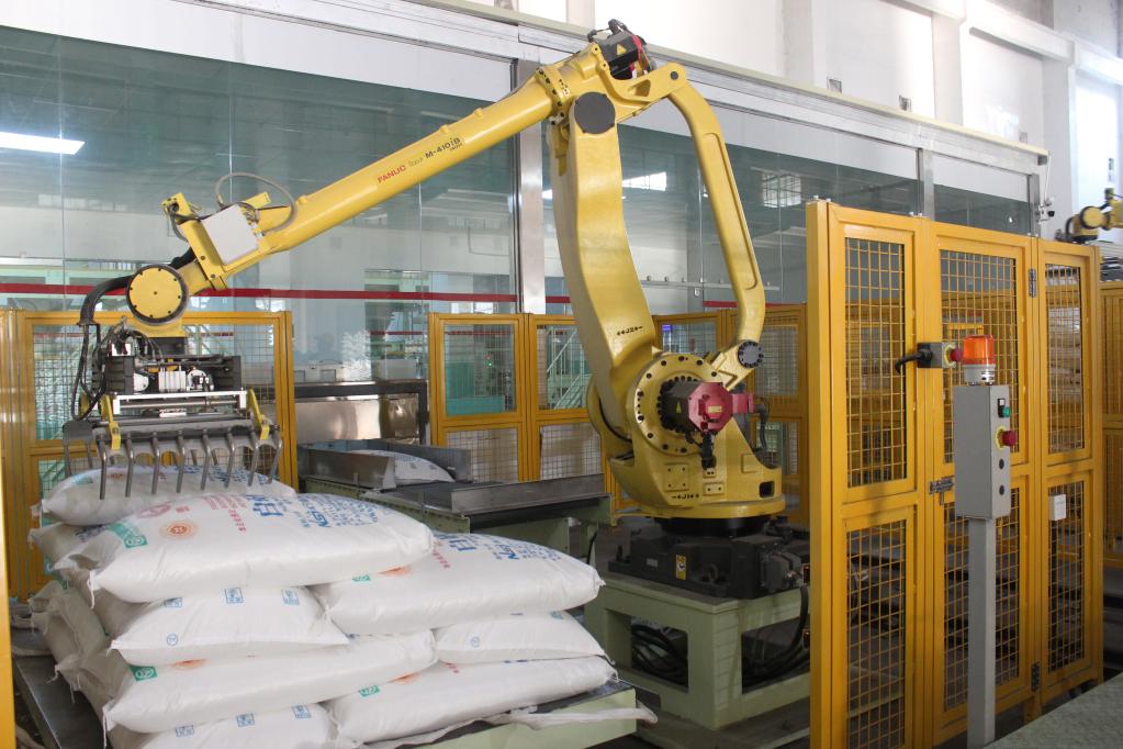 一袋袋白砂糖被机器人精准抓取、码放。(受访者供图)