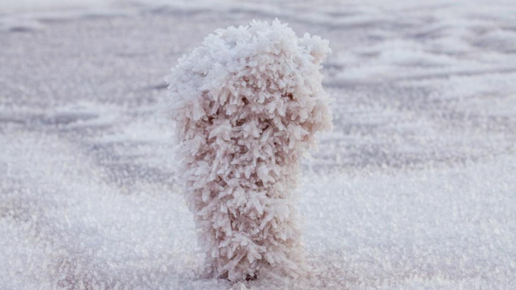 运城盐湖里的“硝花”形态各异。(采访对象供图)