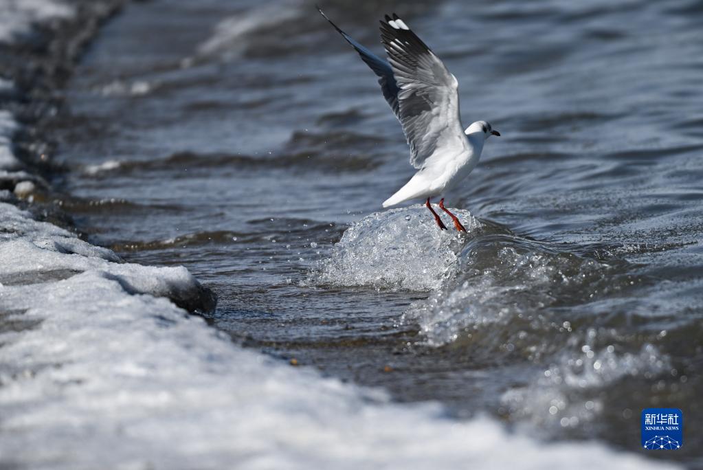 仲冬时节,位于青藏高原的青海湖沿岸被冰霜包裹,浩瀚碧澄的湖面,宛如一面巨大的宝镜,在阳光下熠熠生辉。湖岸周围,棕头鸥、普氏原羚等高原“精灵”憩息、觅食,同一望无际的湖水,构成一幅冬日美丽画卷。