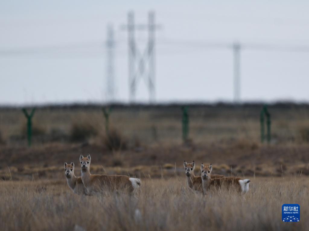 12月9日,几只普氏原羚在青海湖边的草场上活动。