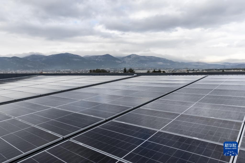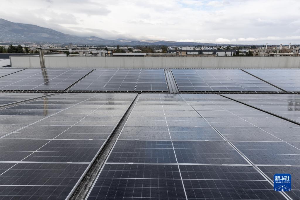 这是11月29日在希腊雅典郊区拍摄的安装在斯泰伊乌家族有限公司工厂屋顶的太阳能面板。新华社发(莱夫特里斯·帕察里斯摄)