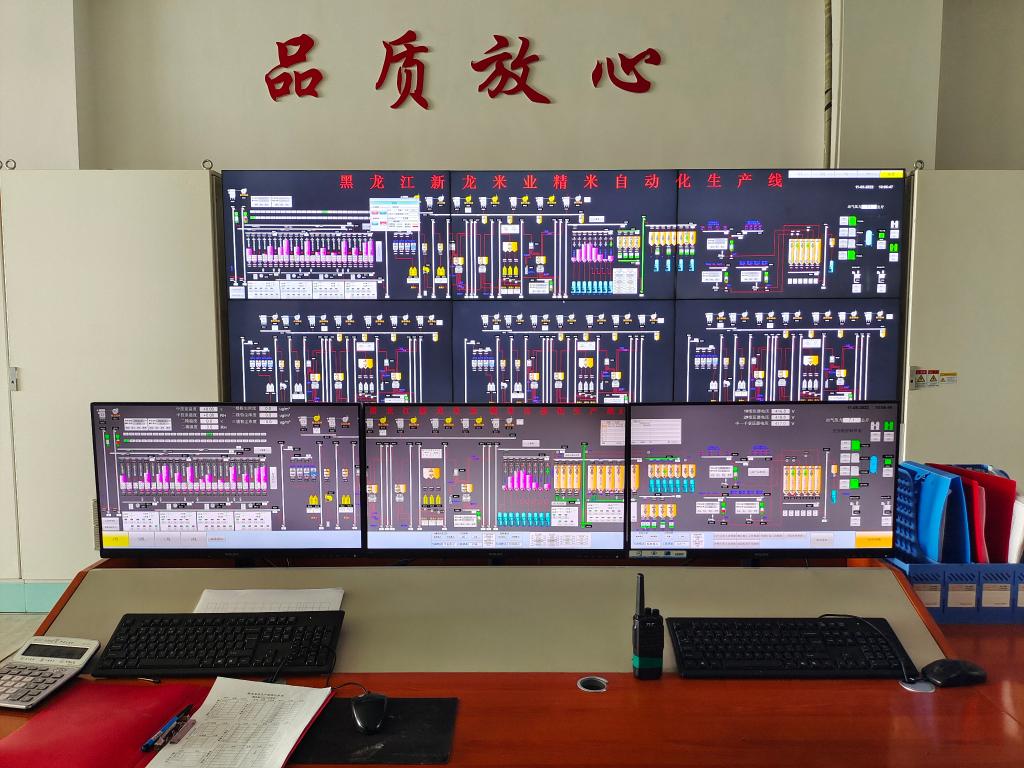 新龙米业有限公司的中控室设备。新华社记者 陈聪 摄