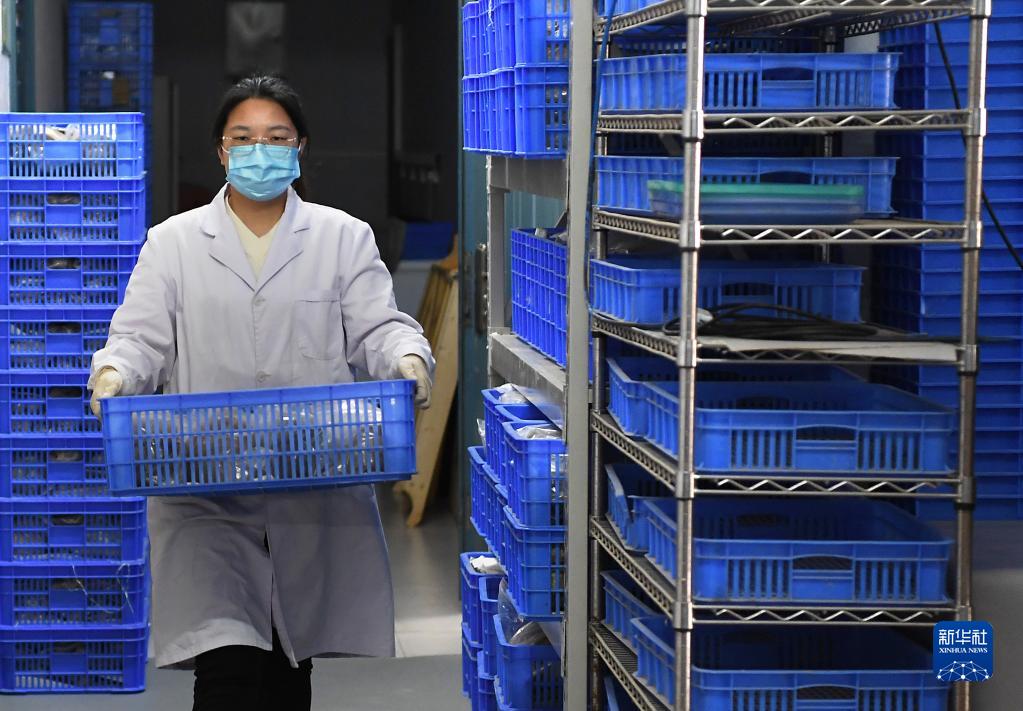在河南省文物考古研究院,李彦桢拿着骸骨标本去往标本库(11月30日摄)。