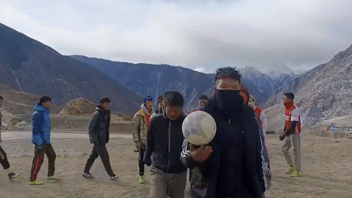 昌都市洛隆县马利镇马利村村民们自发修建的足球场。