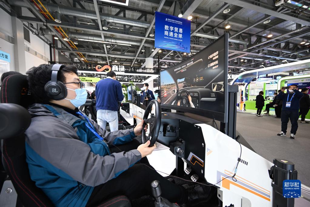 12月12日,工作人员在首届全球数字贸易博览会上展示虚拟驾驶系统。