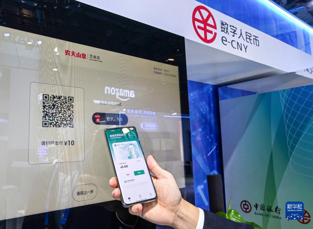 12月12日,工作人员在首届全球数字贸易博览会上展示数字人民币的应用场景。