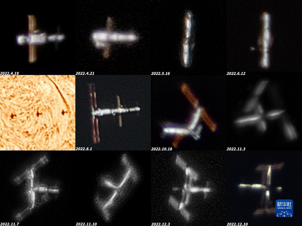 自2022年4月以来中国空间站建造阶段的若干不同构型(拼版照片)。