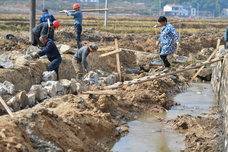 在湖南省湘潭市湘乡市梅桥镇梅桥村,工人进行农田水渠改造作业。新华社记者陈泽国摄于11月17日