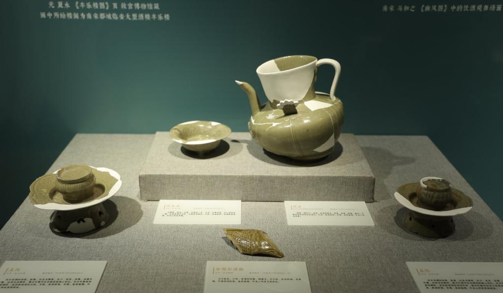 此外,遗址群还出土了大量瓷器残件和烧制瓷器的窑具残件,据测算,前者有数十万片,后者有200多吨。出土的瓷器中绝大多数是青瓷,少部分是酱釉瓷。不少青瓷上带有花卉纹、龙凤纹、鹦鹉纹或婴戏纹,见证了宋代瓷工的高超刻画技艺。