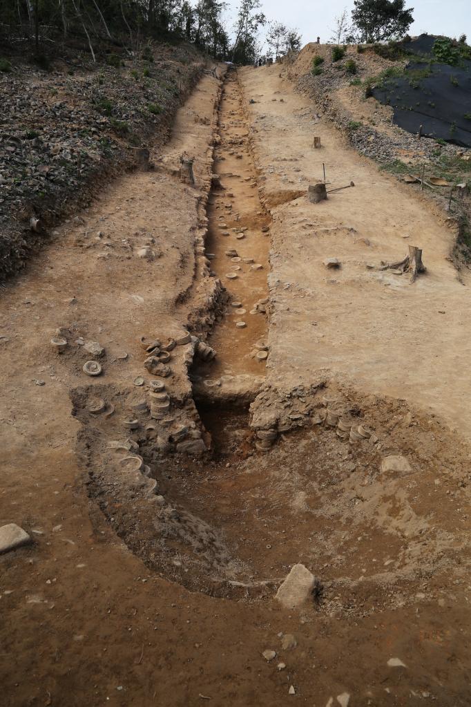 图为在竹家岭窑址发现的这条“超长”龙窑,长度达72.32米,是浙江境内发现的最长的宋代龙窑遗址。