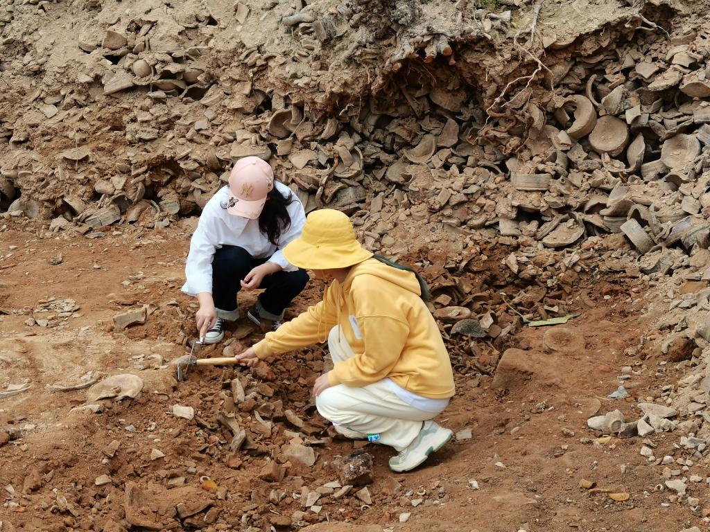 2022年11月,考古工作者在沙埠窑遗址群的竹家岭窑址发掘,身后就是厚厚的瓷片和窑具的堆积层。