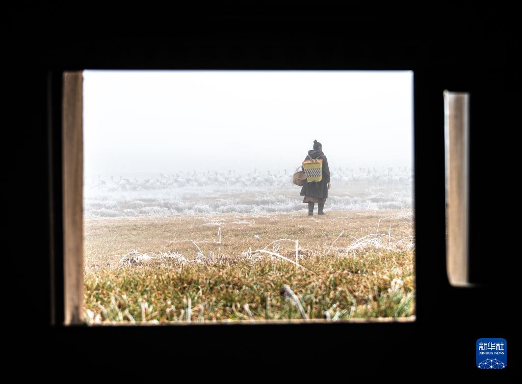 12月10日,陈光会在云南大山包黑颈鹤国家级自然保护区给黑颈鹤投食。