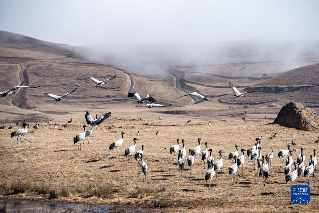 这是12月11日在云南大山包黑颈鹤国家级自然保护区内拍摄的黑颈鹤。