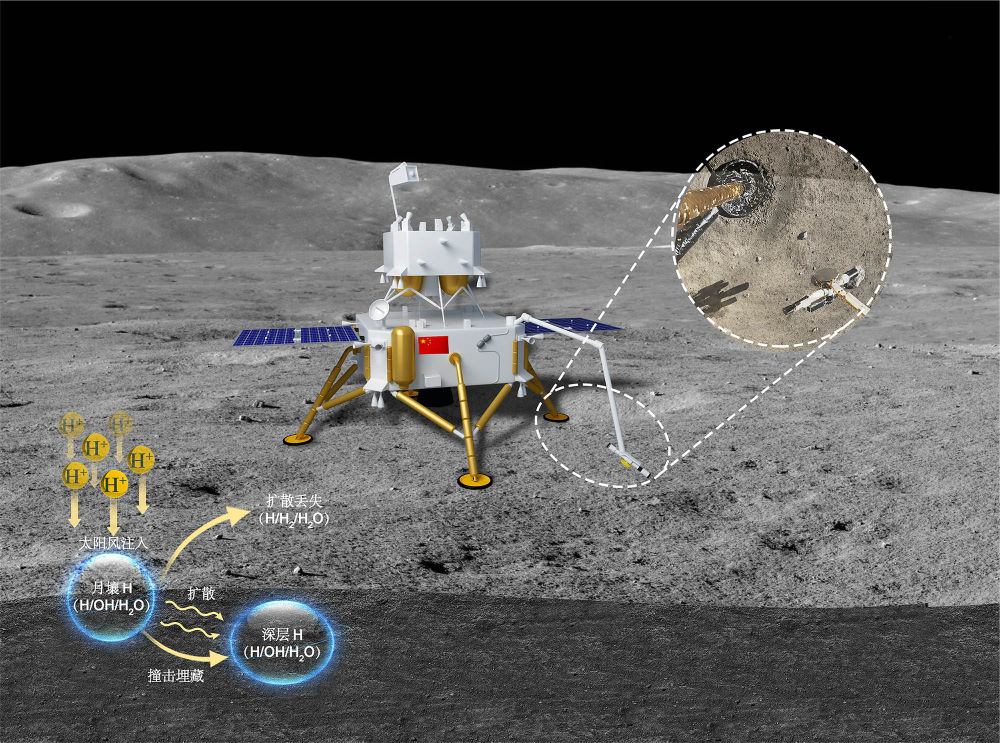 “从太阳发射出的氢离子平均速度达到每秒450公里,它们就像子弹一样打入月壤颗粒的表层。”论文共同第一作者、地质与地球物理所副研究员田恒次说。