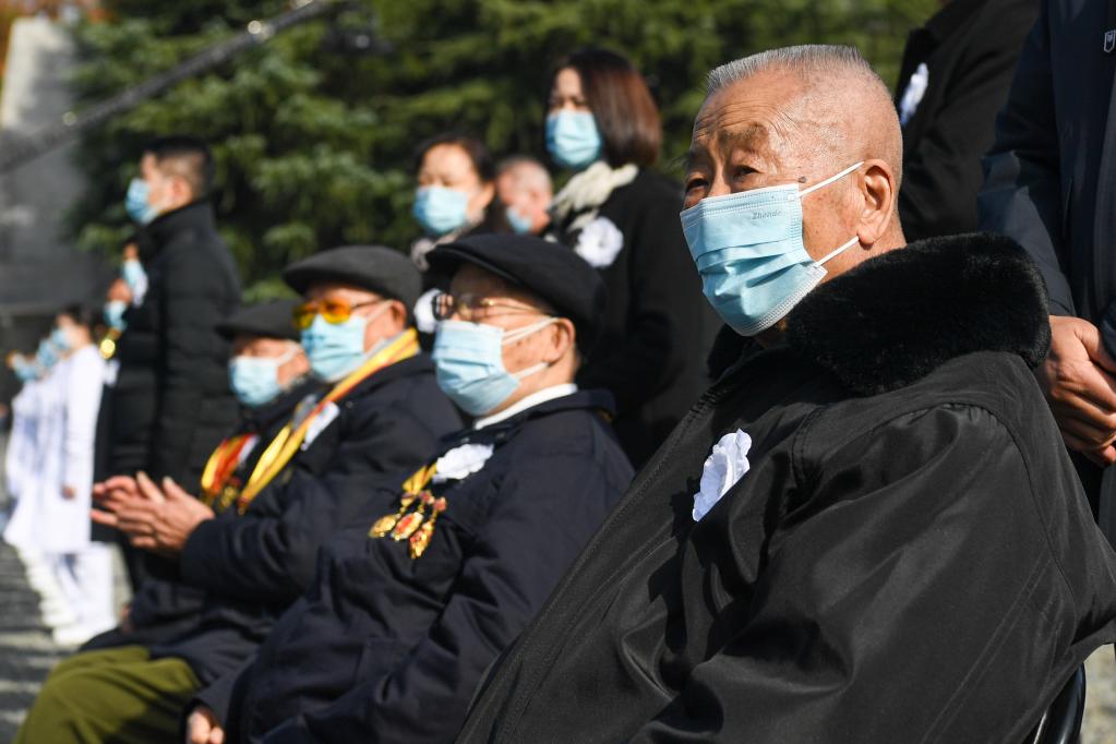 2022年12月13日,南京大屠杀幸存者葛道荣(右一)参加国家公祭仪式。新华社记者 李博 摄