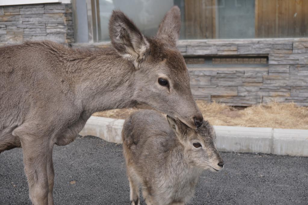 张玉珍端着精心准备的食物,走向基地院子一侧的笼舍。一只西藏马鹿和一只岩羊,一大一小亲昵地跟在她身后,仿佛是两个默契无言的老朋友。