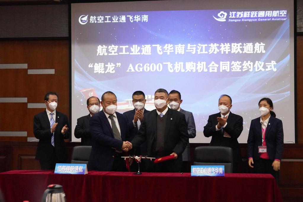 12月15日,航空工业通飞华南公司与江苏祥跃通用航空有限公司正式签署了5架“鲲龙”AG600M(灭火型)飞机购机合同。这标志着AG600项目“三机总装、三机首飞、三架订单和三大试验”的年度任务圆满收官。