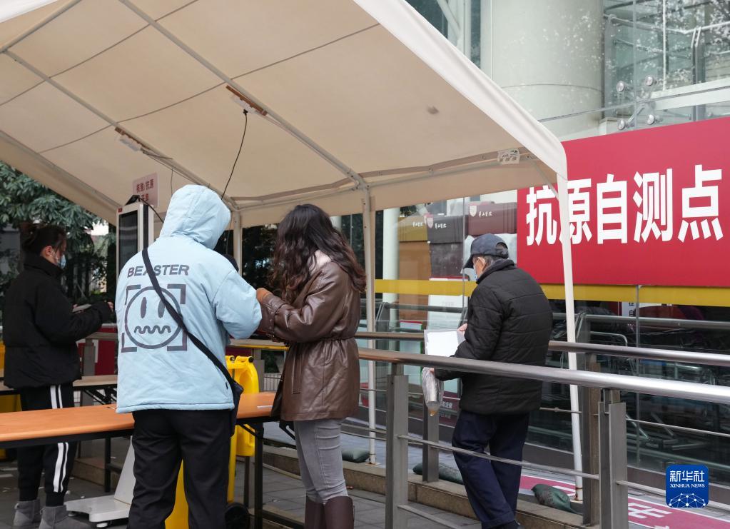 12月17日,在复旦大学附属华山医院,患者有序进行抗原自测。