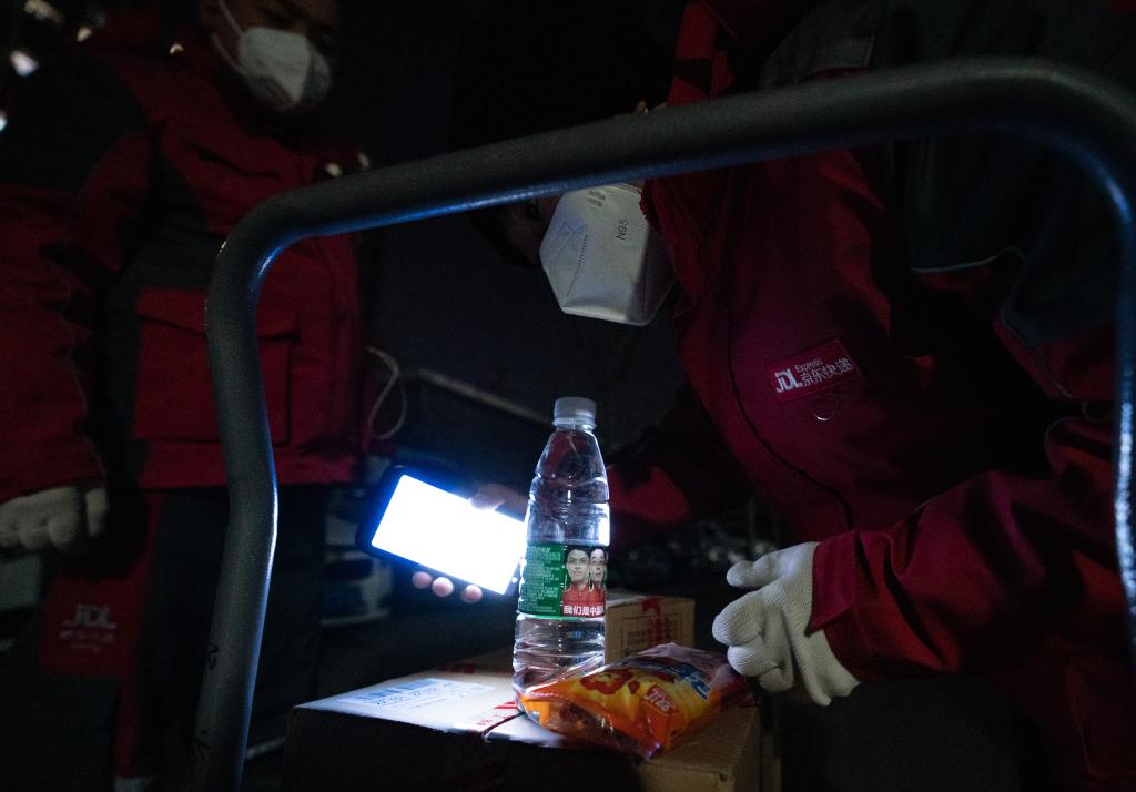“辛苦了,给你们填填肚子吧。”正当齐帅龙和另一位从西安来京的小哥在楼下交接时,住户王东突然赶来,送来了水和火腿肠。在聊天中他得知眼前的小哥是从外地来支援的,内心着实感动。目前,药品、口罩等防疫物资及生活必需品约占天宫院营业部配送货物的三分之一,特殊时期,快递小哥常不能按点吃饭,但他们的敲门声能解百姓们心中所急。