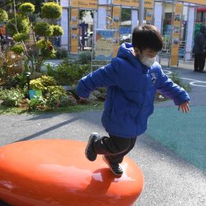 12月17日,小朋友在南宁市青秀区南湖小区改造后的中心花园玩耍。