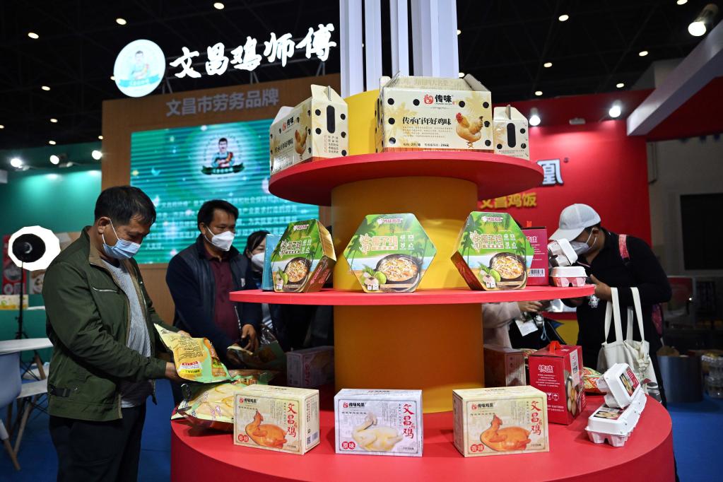为做大做强文昌鸡产业,当地打造的劳务品牌“文昌鸡师傅”也亮相冬交会。这一劳务品牌涵盖文昌鸡全产业链,从种苗培育、繁殖养殖到食品加工、烹饪制作以及餐饮门店等环节,与文昌鸡公用品牌互为呼应、相互促进。